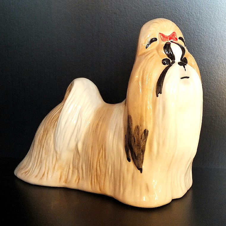 Шит-цу одна из древнейших собак, до 20 века были запретными собачками дворца китайского императора. Дословно с китайского переводится как львенок. Существует также легенда, что Будду сопровождала в пути маленькая собачка, готовая в любой момент превратиться в огромного льва на защиту хозяина или для того чтобы Будда ездил на ней. Считается, что собачкой был именно ши-тцу. Ши-тцу сильно привязаны к людям, в жизни они обращают больше внимания и проявляют больший интерес к людям, чем к собакам. Эту прекрасную собаку и изобразили наши мастера.