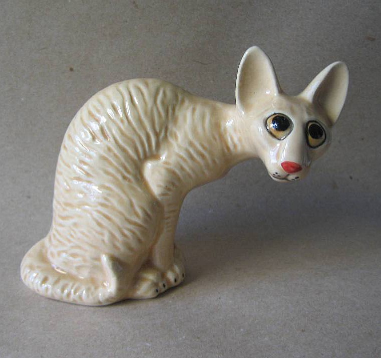 Фарфоровая статуэтка кошка Корниш-рекс кремовый
